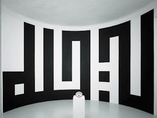 Neste trabalho, fica evidente a geometrização das letras do alfabeto romano como uma forma de aproximação da escrita kufi, um estilo de escrita árabe.